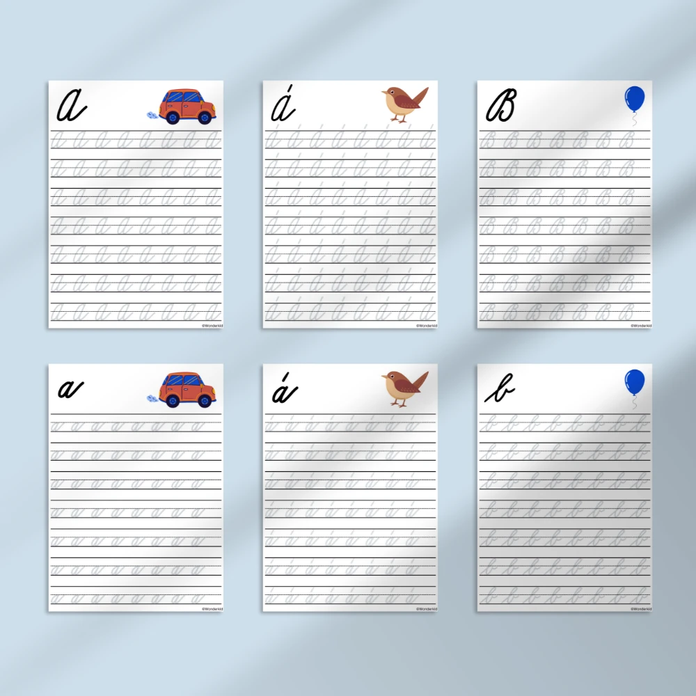 Balíček zahrnuje více než 250 pracovních listů s úkoly a aktivitami, které obsahují cvičení na psacích písmena. Děti se naučí velká a malá písmena.